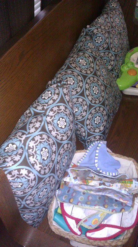 | She also made matching pillows for the bench. |